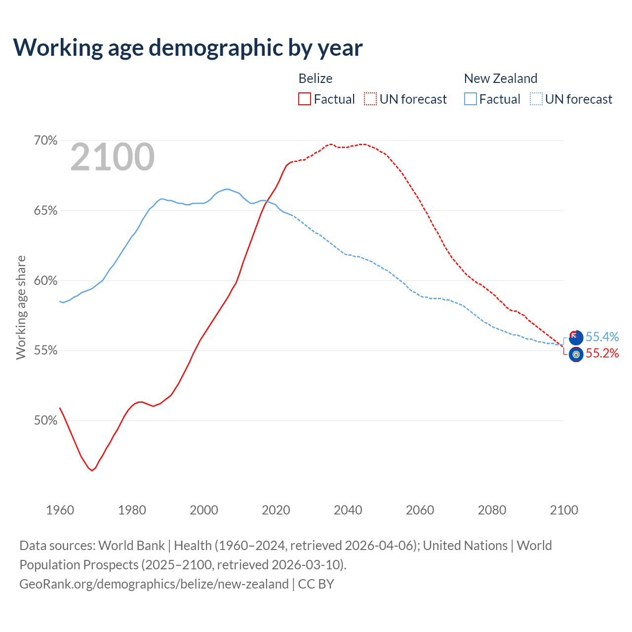 - Belize has 294K working age adults (aged 15-64) vs 3.48M in New Zealand.