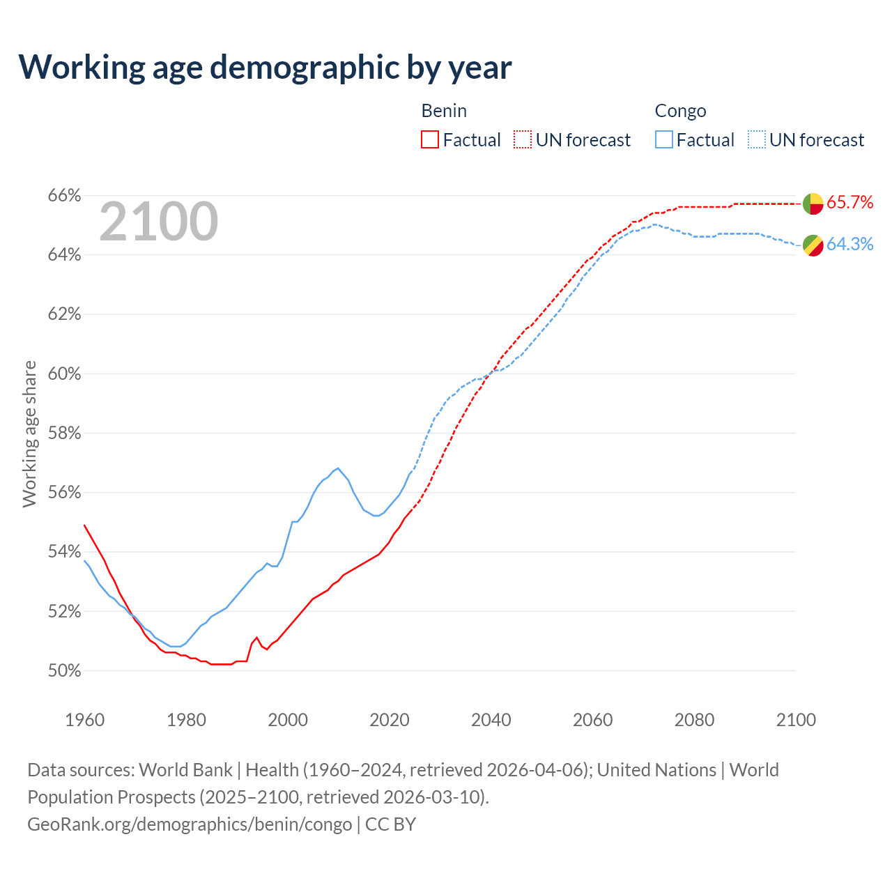 - Benin has 8.45M working age adults (aged 15-64) vs 3.78M in the Congo.