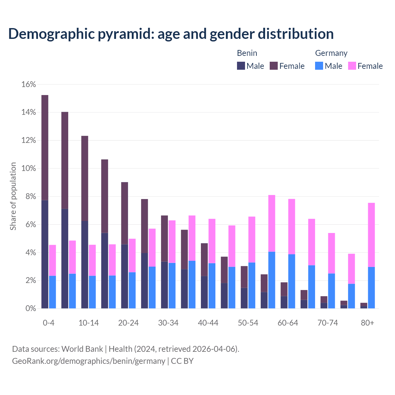 Demographics of Benin compared to Germany: