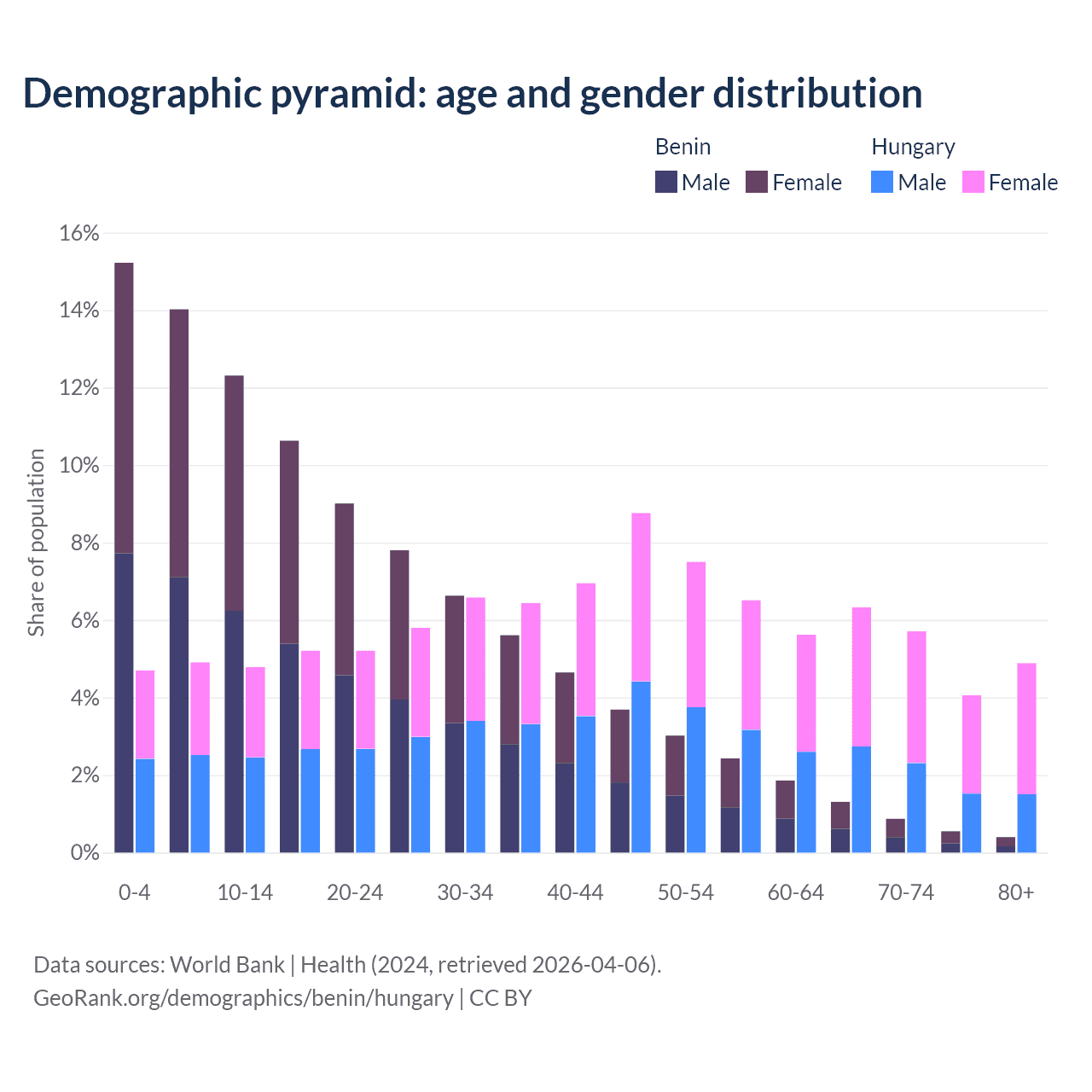Demographics of Benin compared to Hungary: