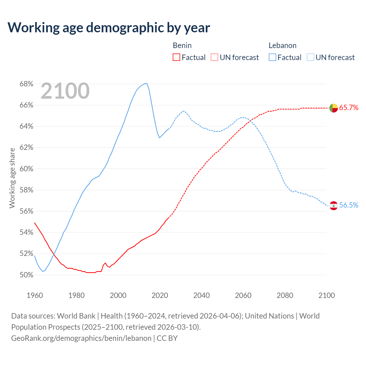 - Benin has 8.45M working age adults (aged 15-64) vs 3.76M in Lebanon.