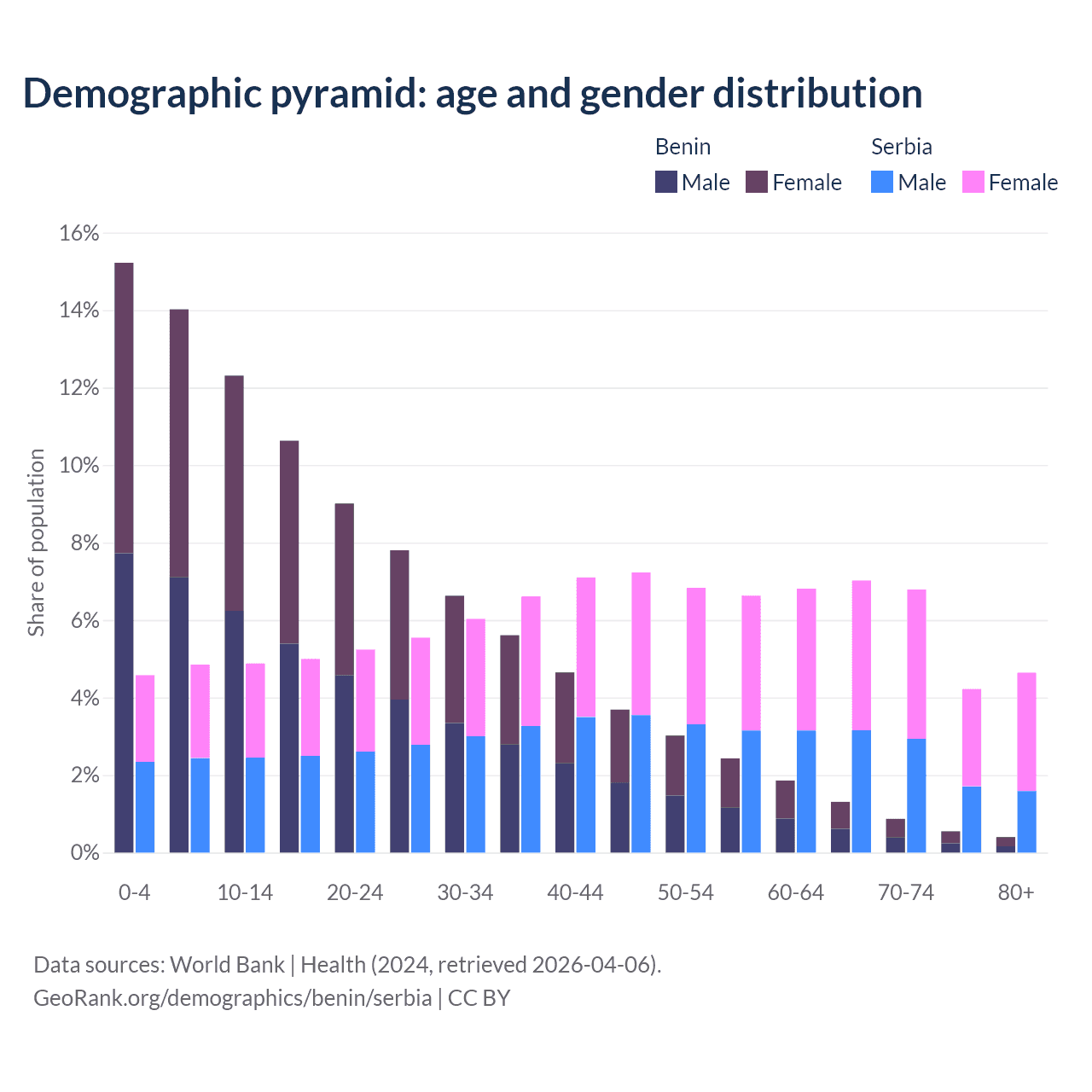 Demographics of Benin compared to Serbia:
