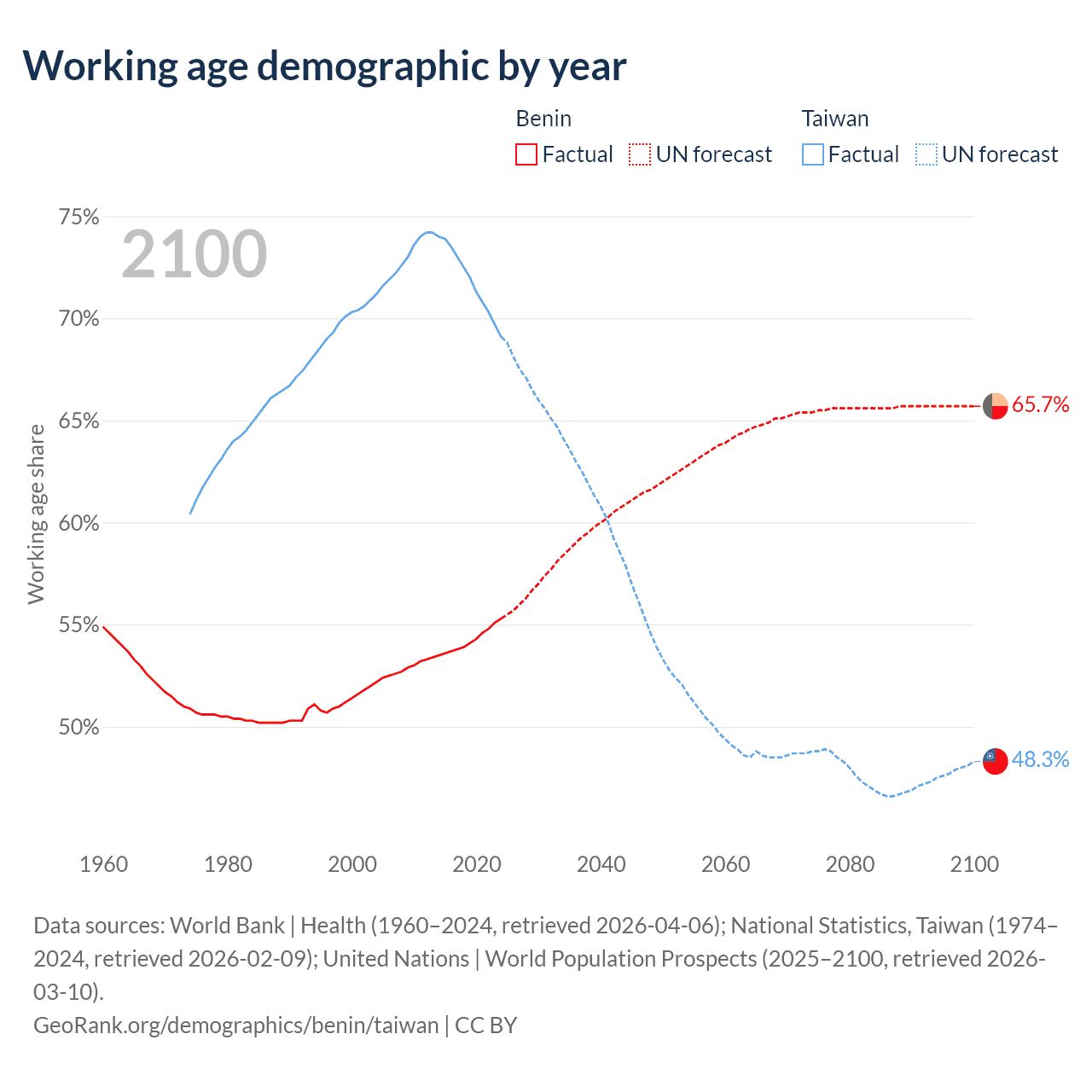 - Benin has 8.45M working age adults (aged 15-64) vs 16.1M in Taiwan.