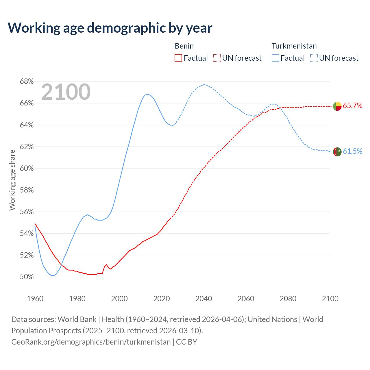 - Benin has 8.45M working age adults (aged 15-64) vs 4.97M in Turkmenistan.