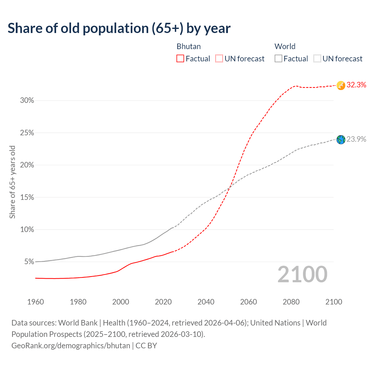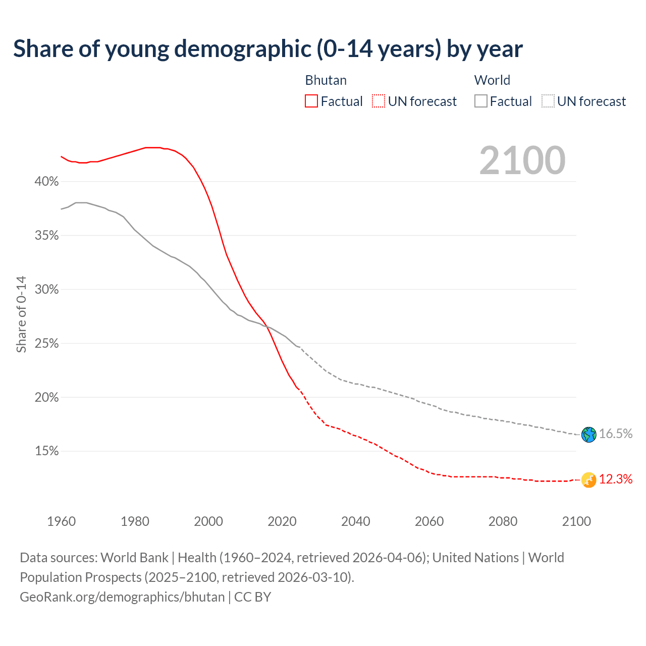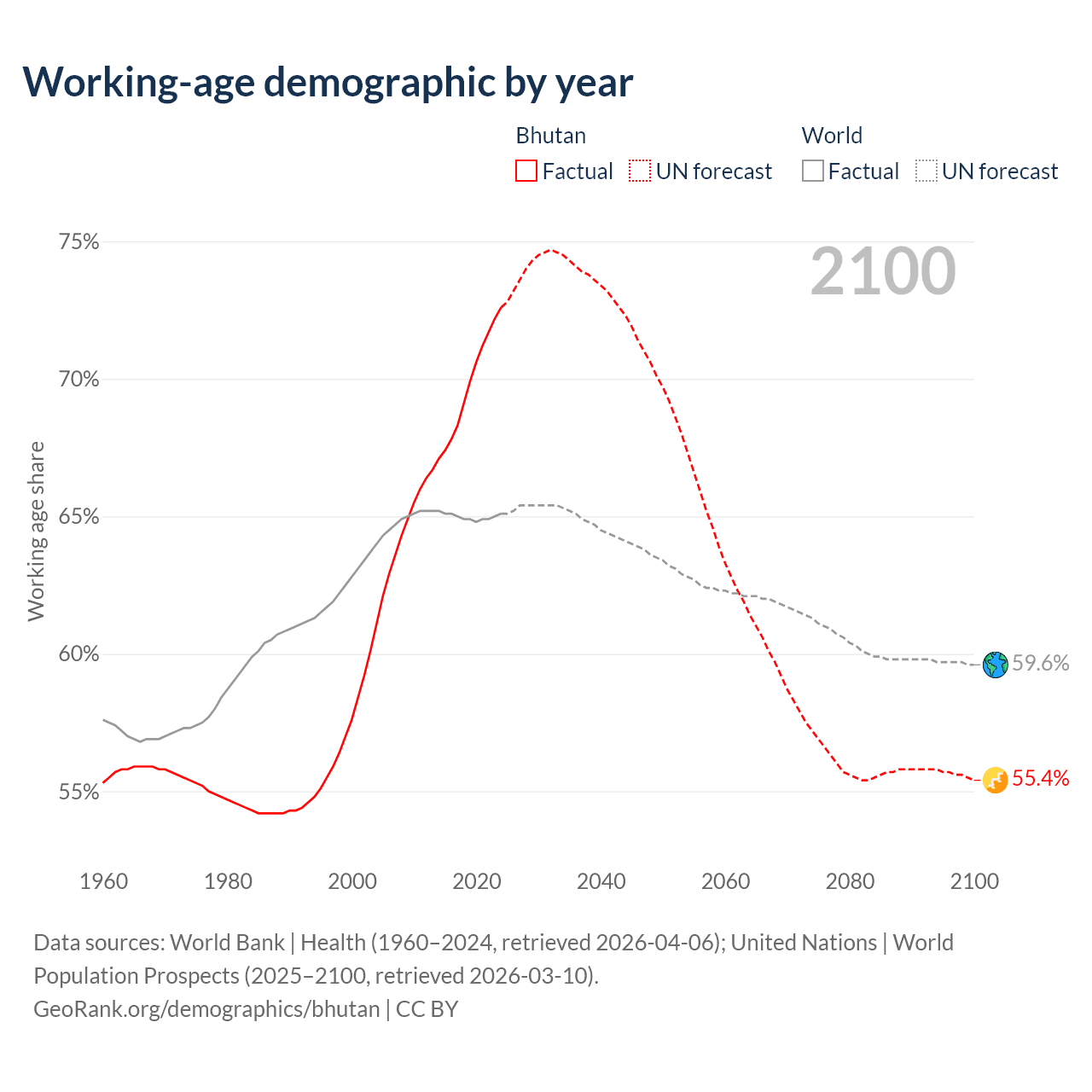 Median age in Bhutan, 1960–2100