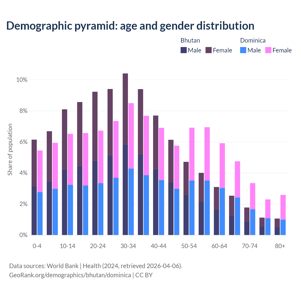 Demographics of Bhutan compared to Dominica:
