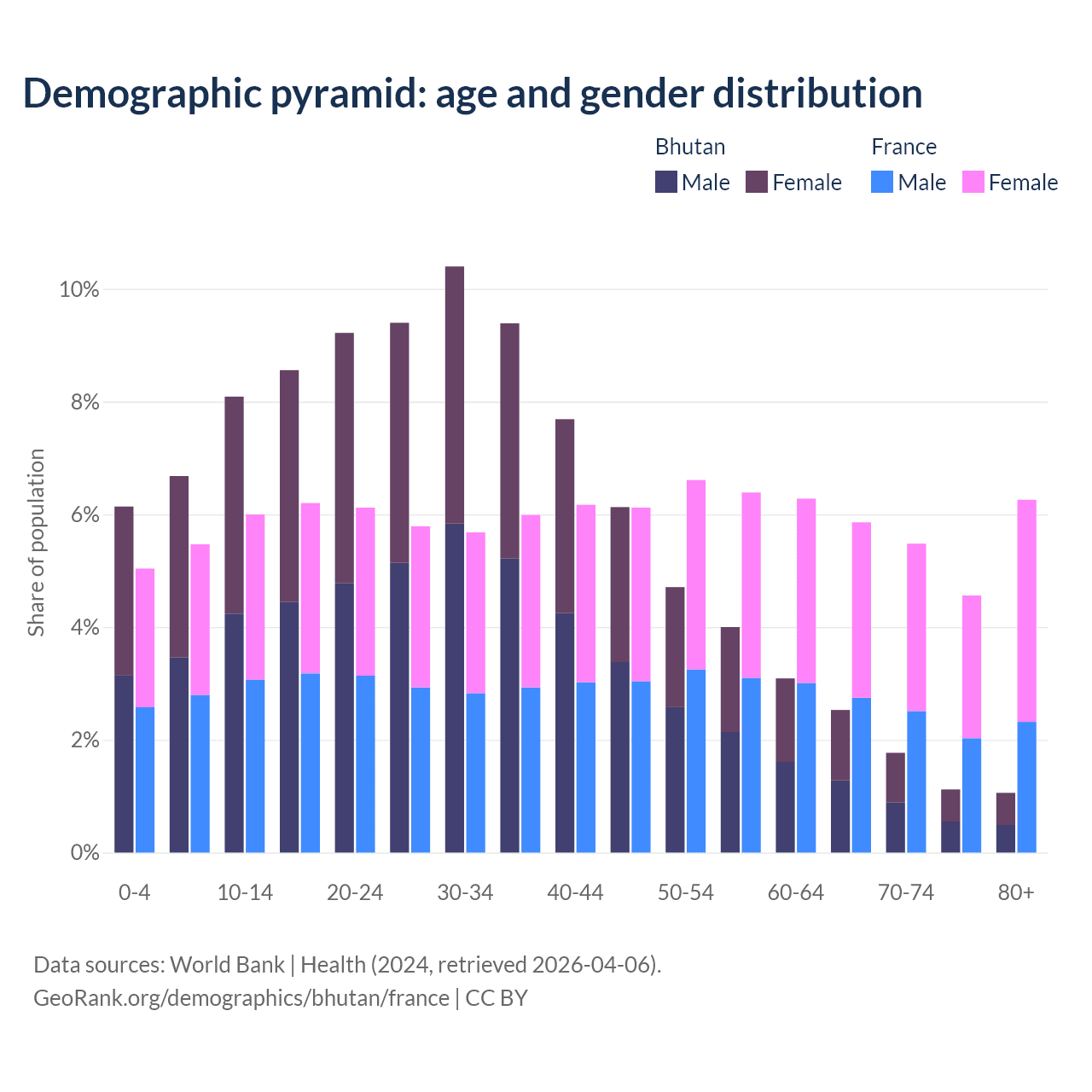 Demographics of Bhutan compared to France:
