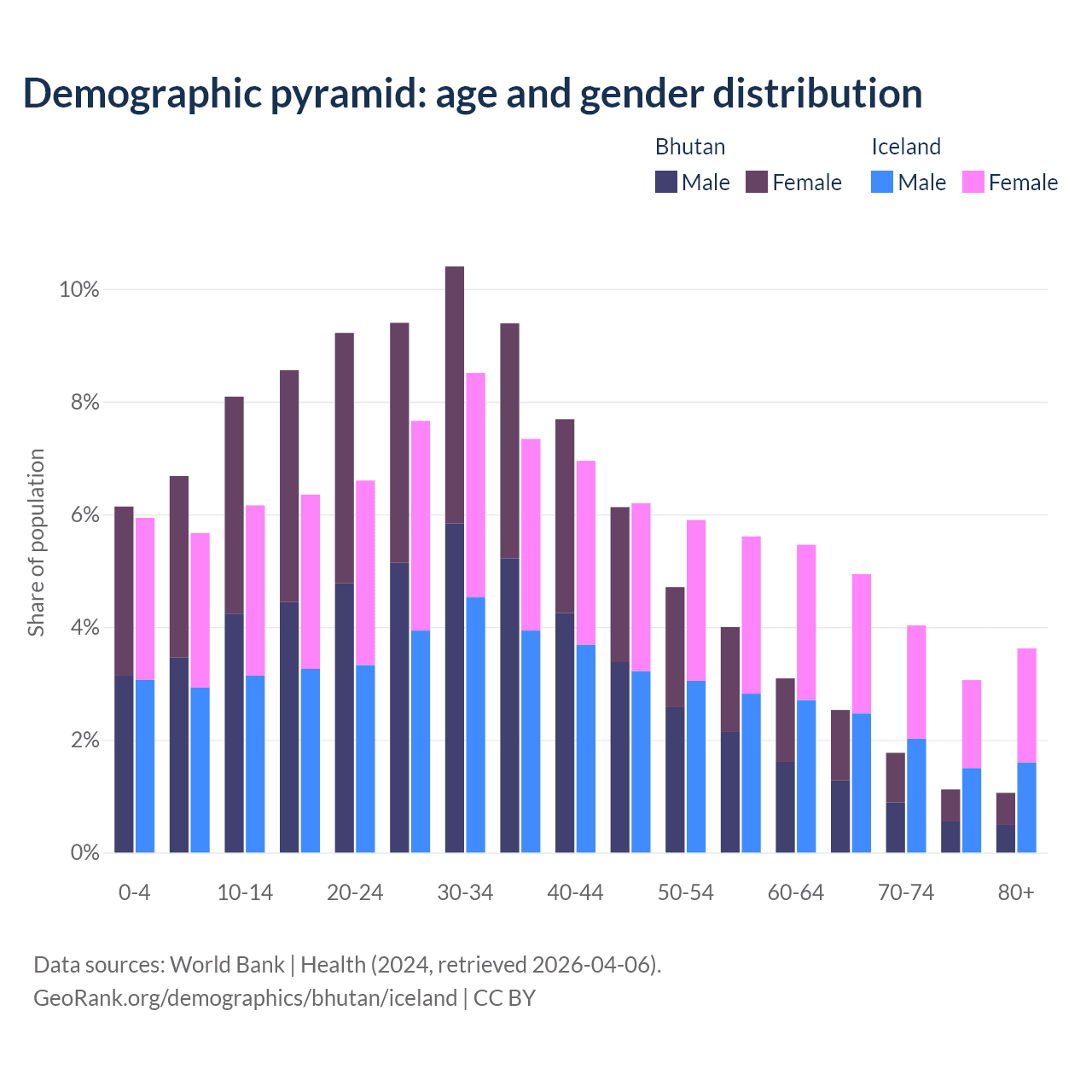 Demographics of Bhutan compared to Iceland: