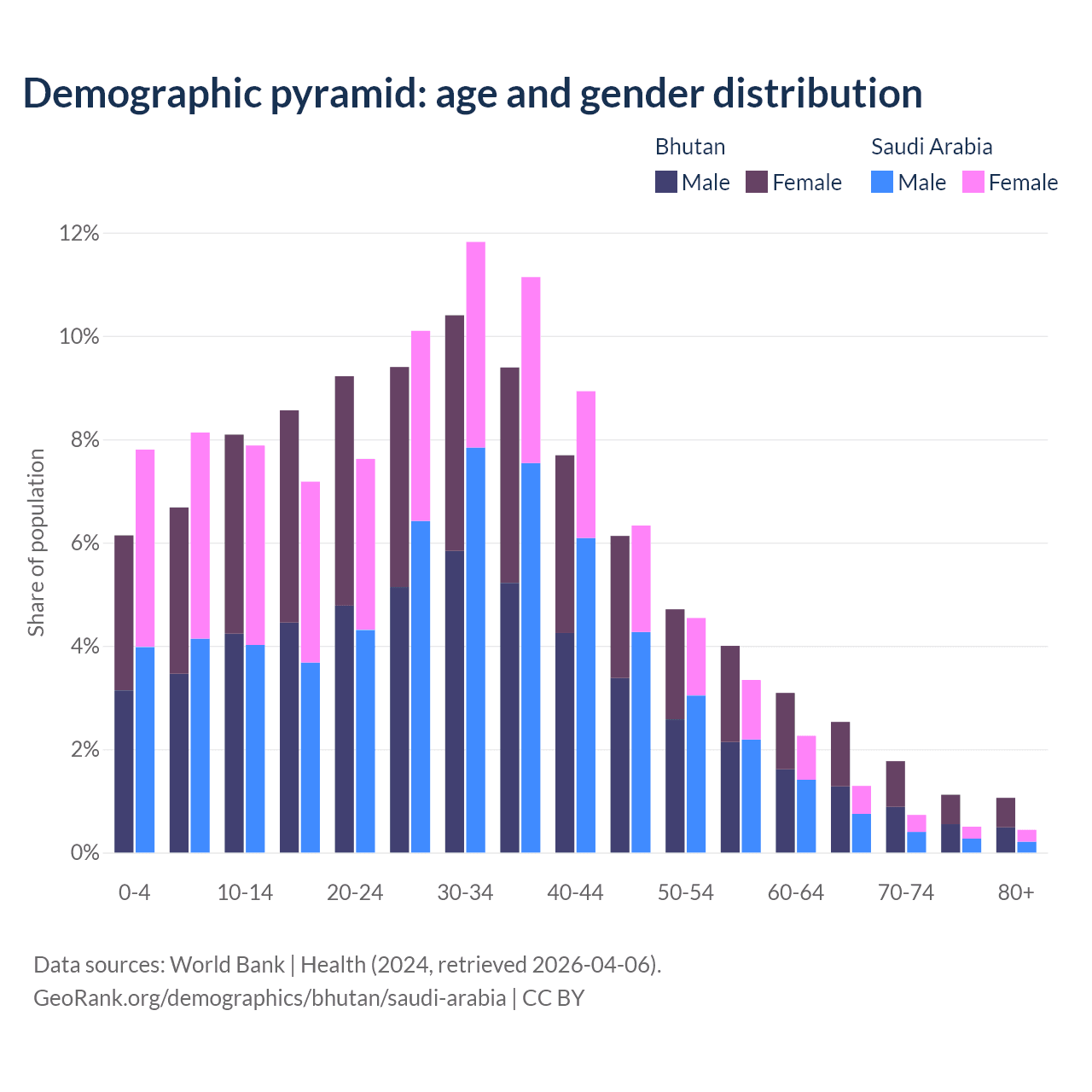 Demographics of Bhutan compared to Saudi Arabia: