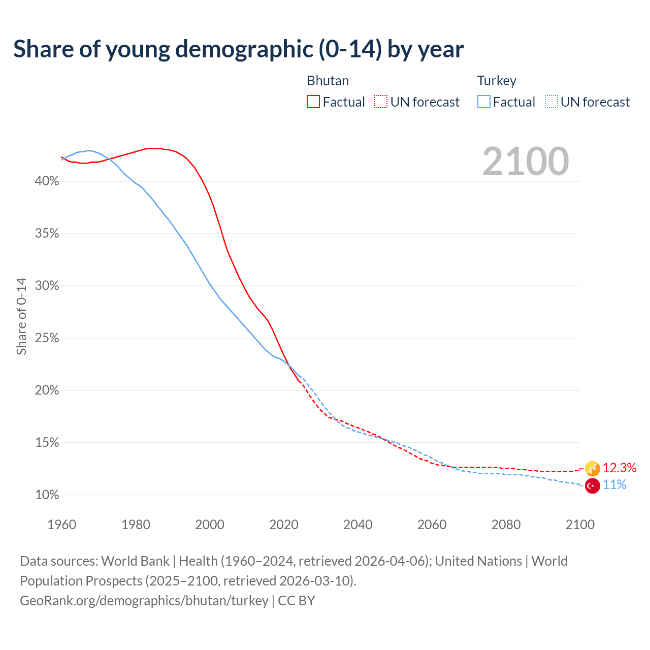 - The share of young demographic (0-15 years old) in Bhutan is 20.9% vs 21.4% in Turkey.