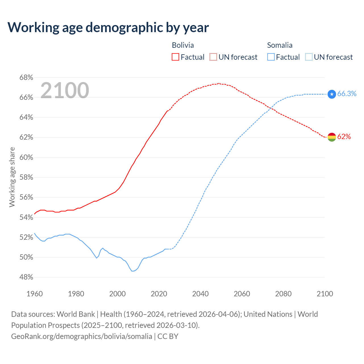 - Bolivia has 8.26M working age adults (aged 15-64) vs 10.4M in Somalia.