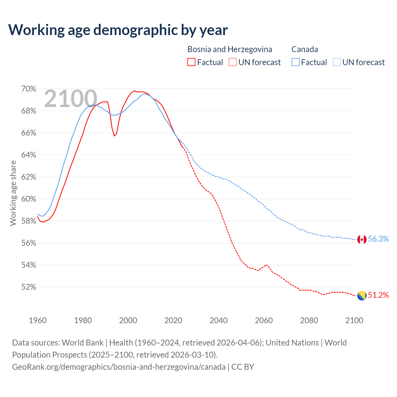 - Bosnia and Herzegovina has 2.02M working age adults (aged 15-64) vs 27.5M in Canada.