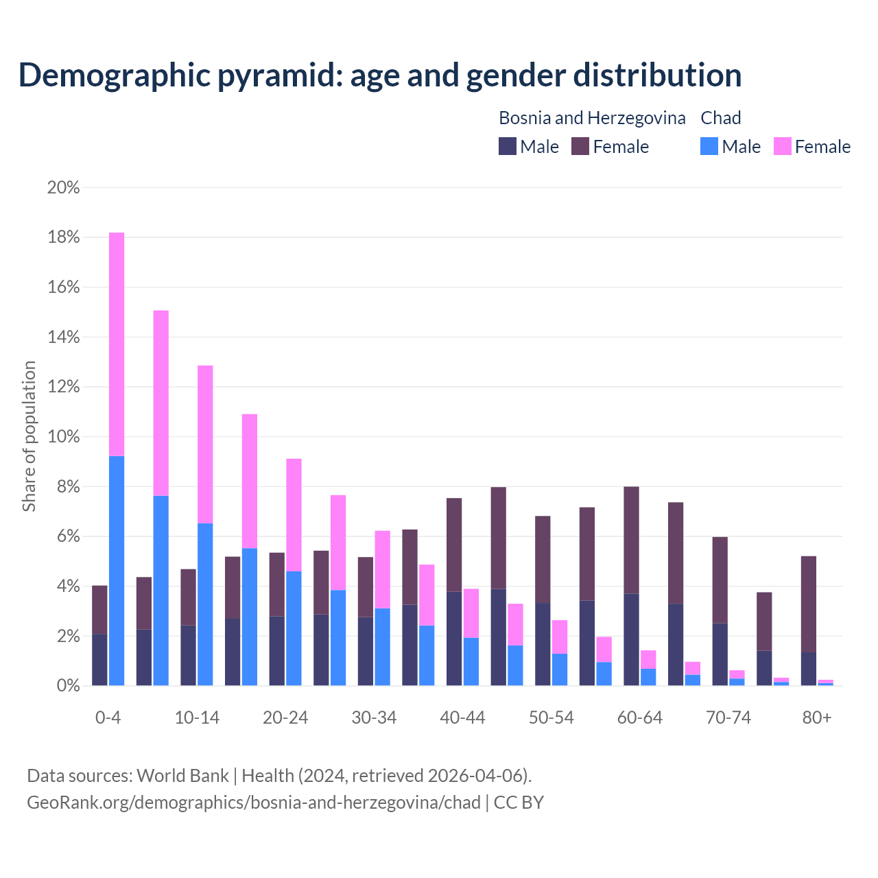 Demographics of Bosnia and Herzegovina compared to Chad: