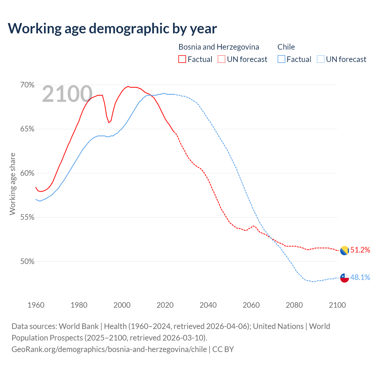 - Bosnia and Herzegovina has 2.02M working age adults (aged 15-64) vs 13.8M in Chile.