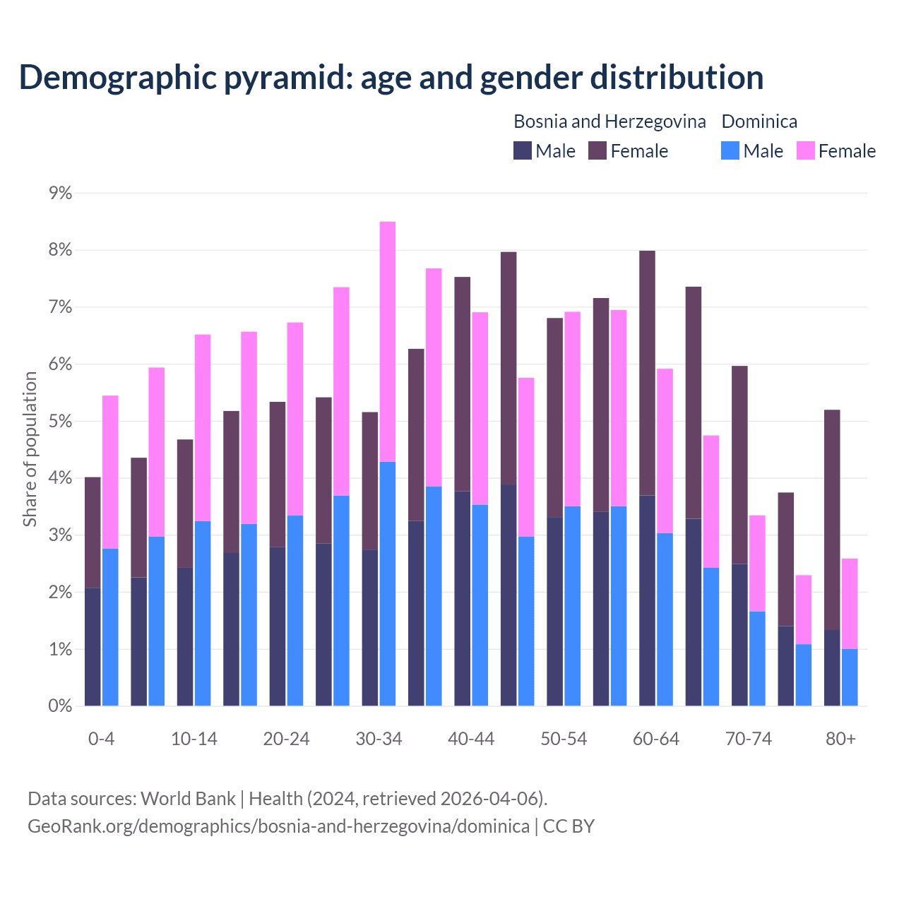 Demographics of Bosnia and Herzegovina compared to Dominica: