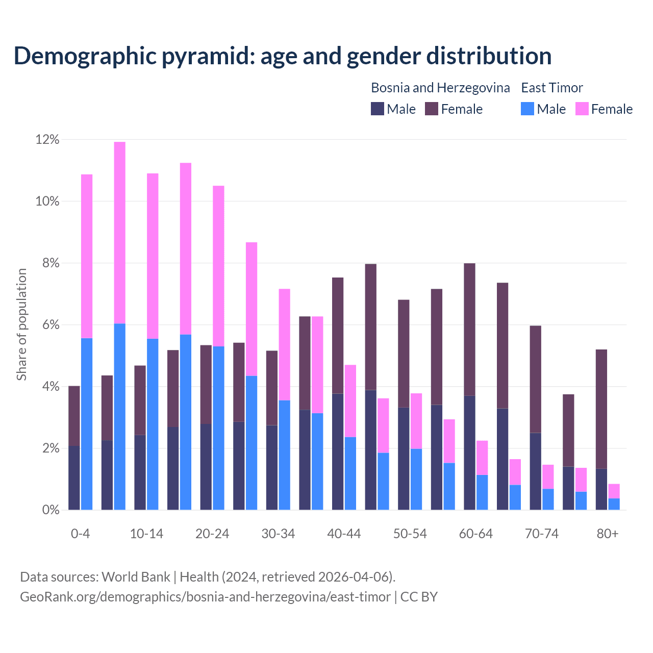 Demographics of Bosnia and Herzegovina compared to East Timor:
