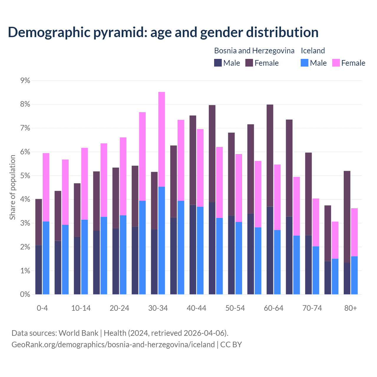 Demographics of Bosnia and Herzegovina compared to Iceland: