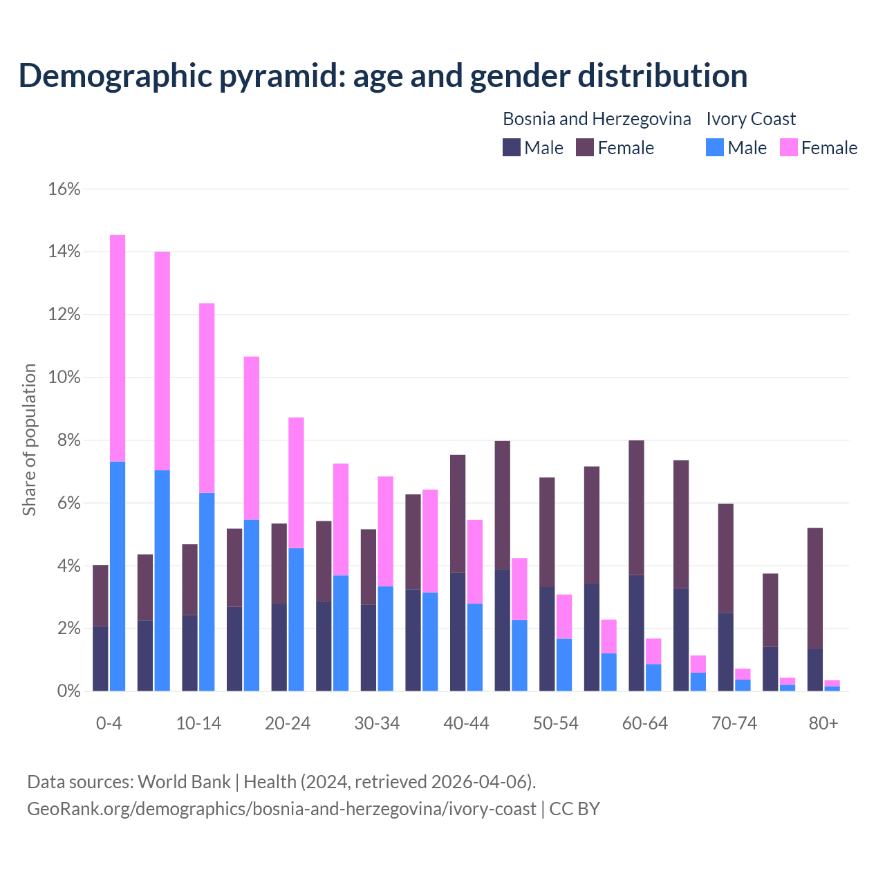 Demographics of Bosnia and Herzegovina compared to Ivory Coast: