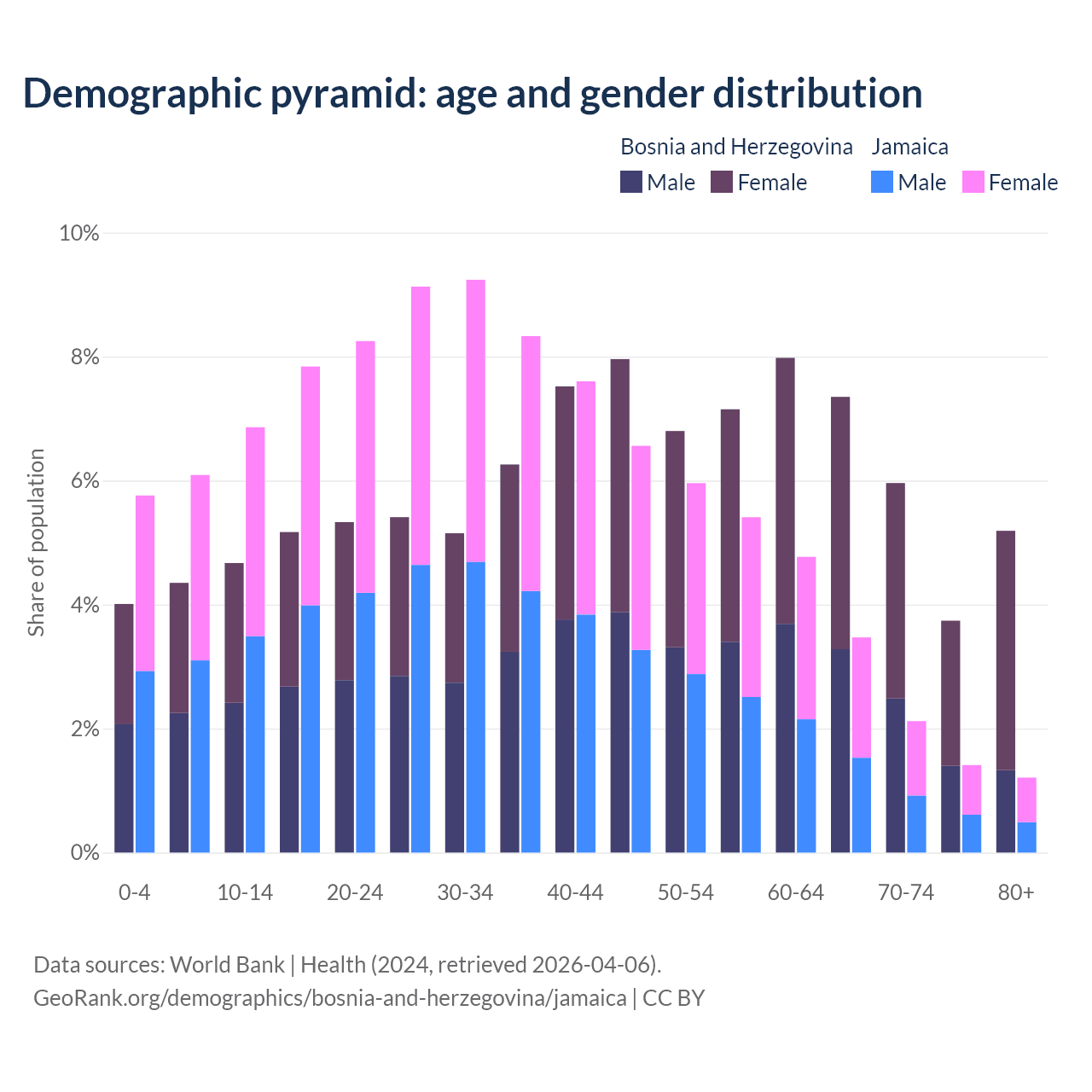 Demographics of Bosnia and Herzegovina compared to Jamaica: