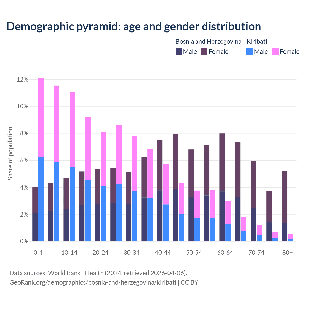 Demographics of Bosnia and Herzegovina compared to Kiribati:
