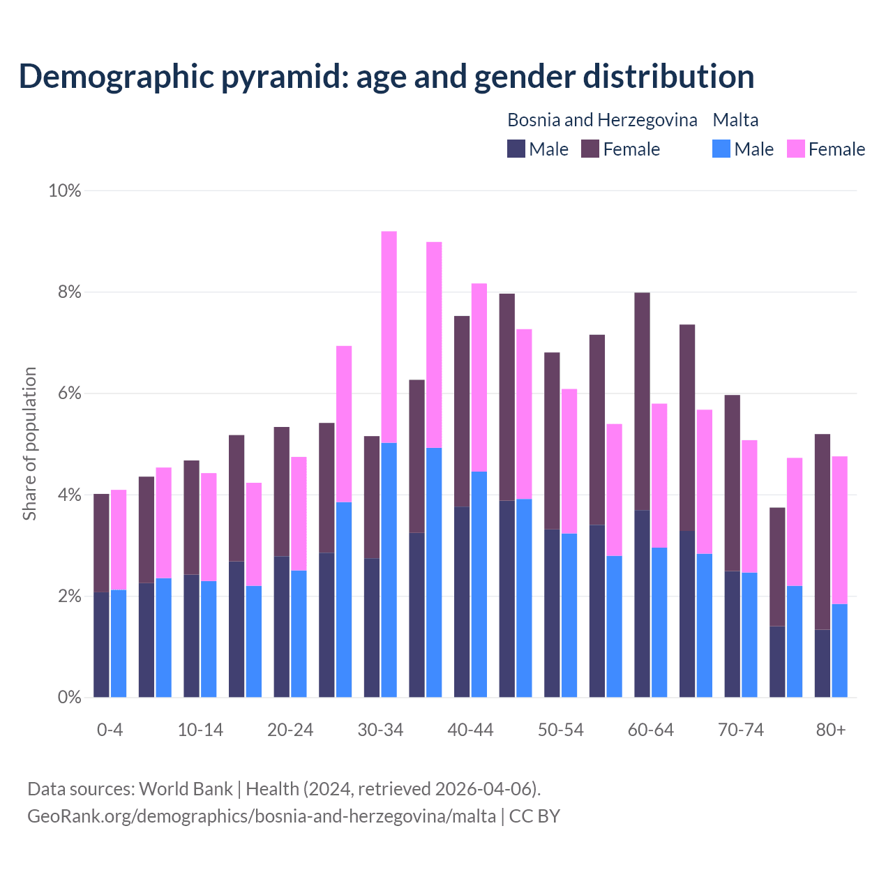 Demographics of Bosnia and Herzegovina compared to Malta: