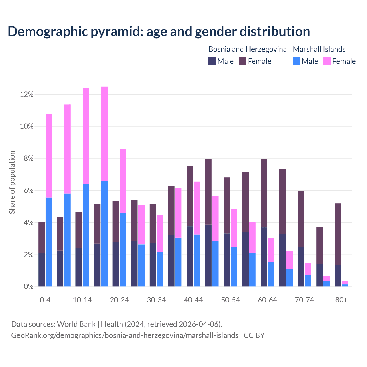 Demographics of Bosnia and Herzegovina compared to the Marshall Islands: