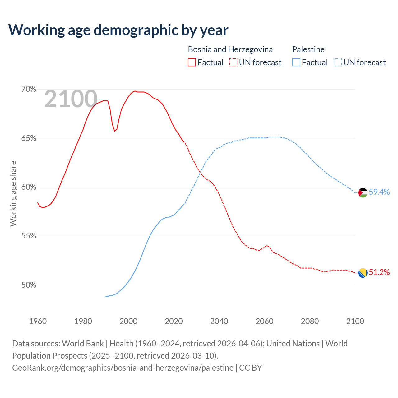 - Bosnia and Herzegovina has 2.02M working age adults (aged 15-64) vs 3.2M in Palestine.