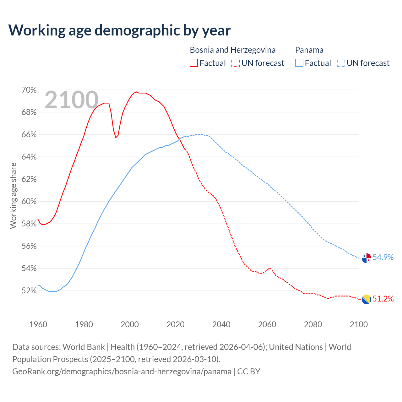 - Bosnia and Herzegovina has 2.02M working age adults (aged 15-64) vs 3.05M in Panama.