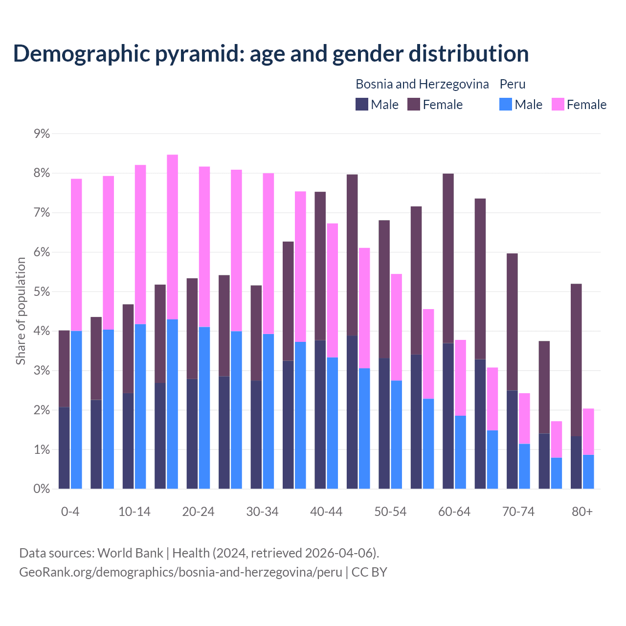 Demographics of Bosnia and Herzegovina compared to Peru: