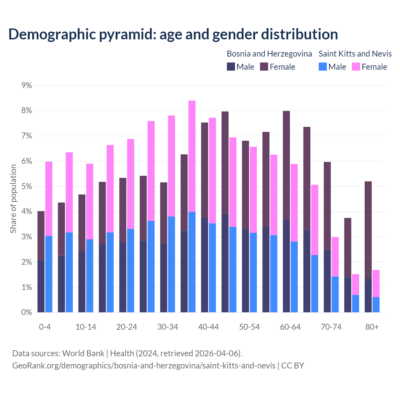 Demographics of Bosnia and Herzegovina compared to Saint Kitts and Nevis: