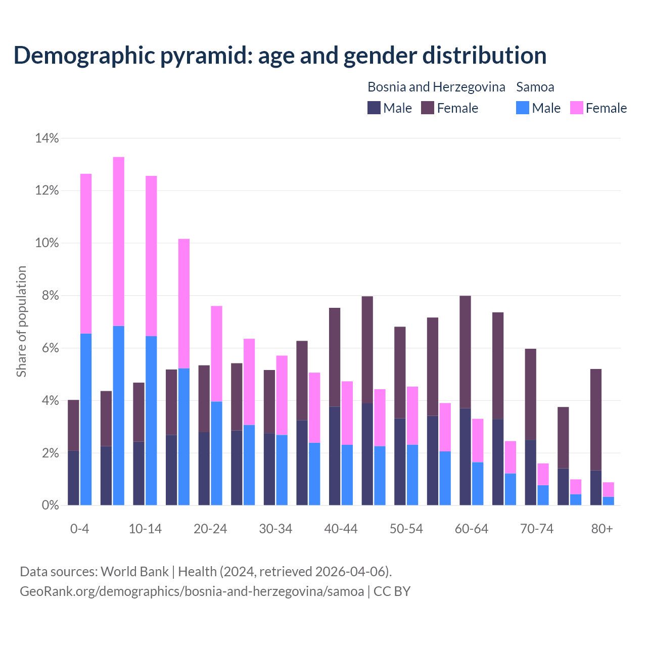 Demographics of Bosnia and Herzegovina compared to Samoa:
