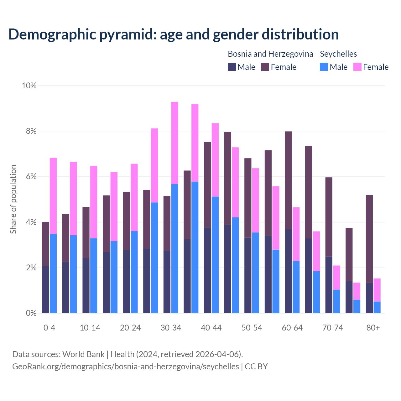 Demographics of Bosnia and Herzegovina compared to the Seychelles: