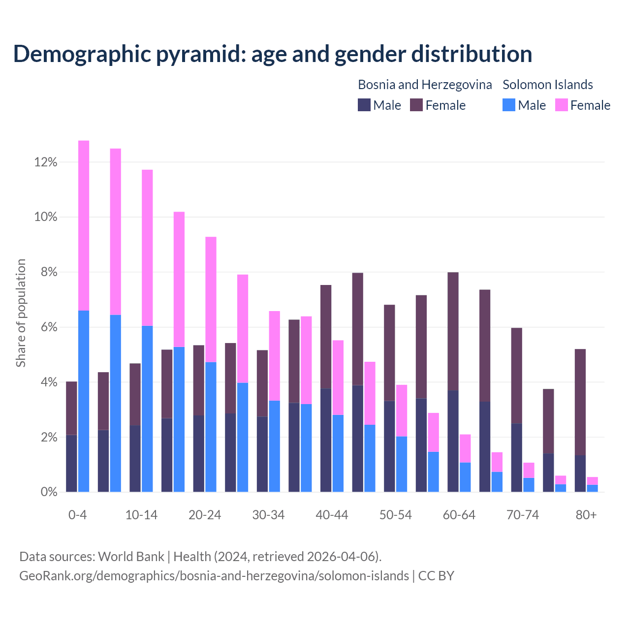 Demographics of Bosnia and Herzegovina compared to the Solomon Islands:
