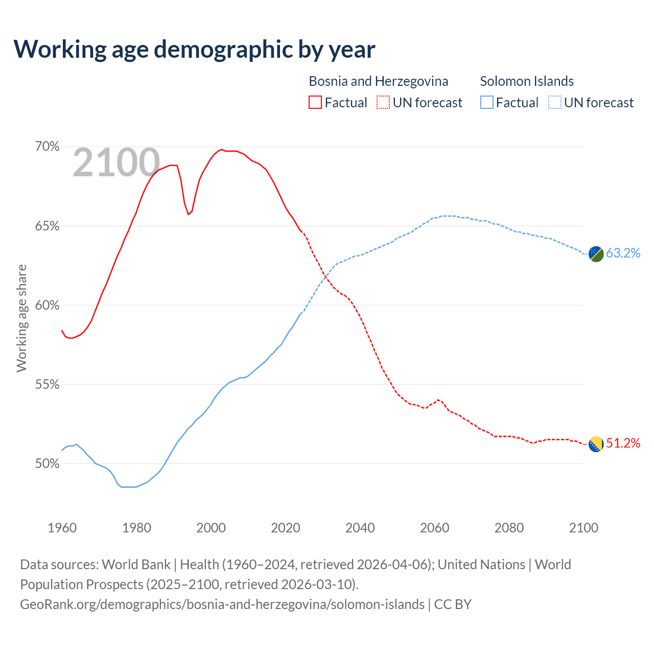 - Bosnia and Herzegovina has 2.02M working age adults (aged 15-64) vs 513K in the Solomon Islands.