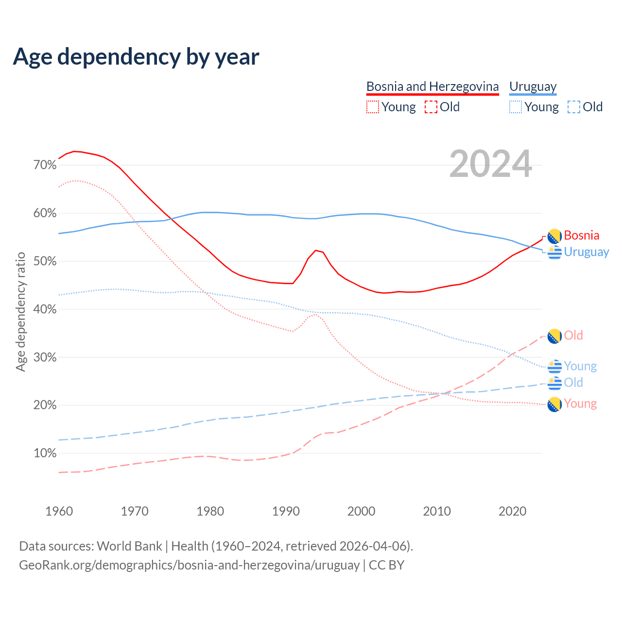 - World Bank | Health (1960–2024, retrieved 2026-04-06)