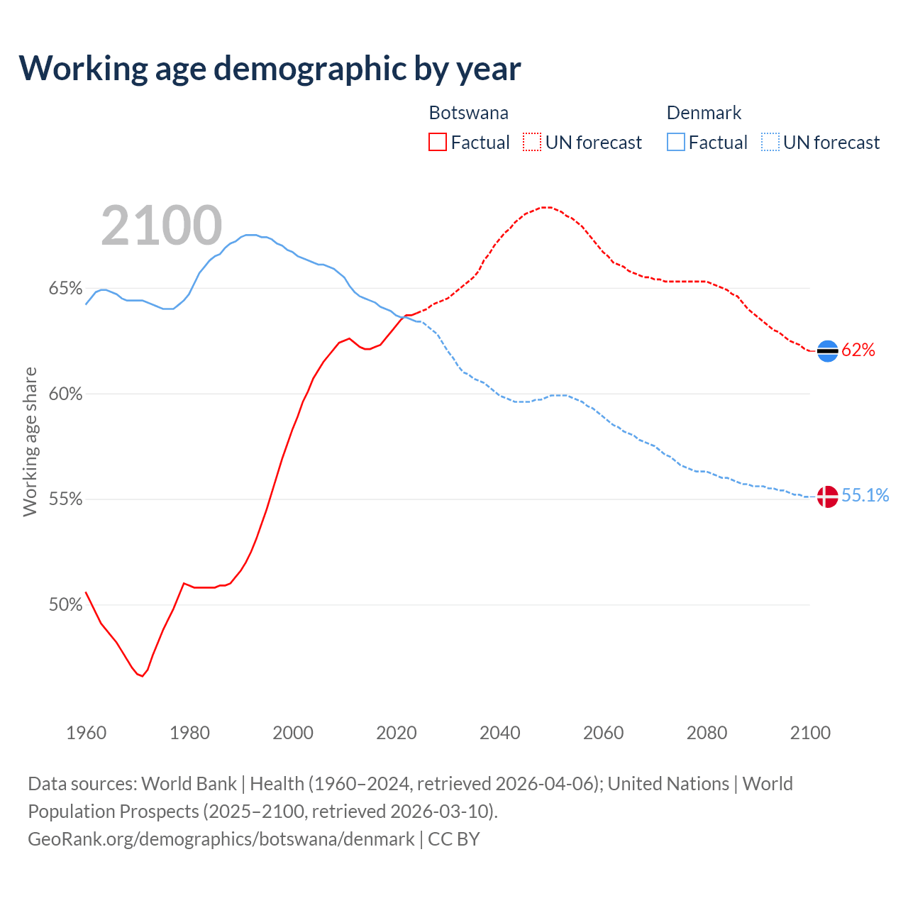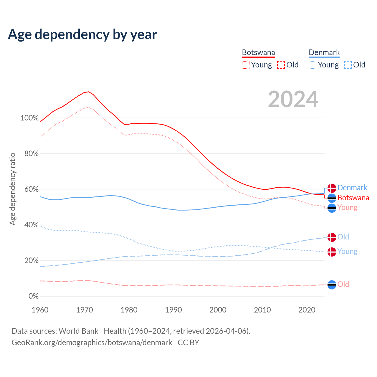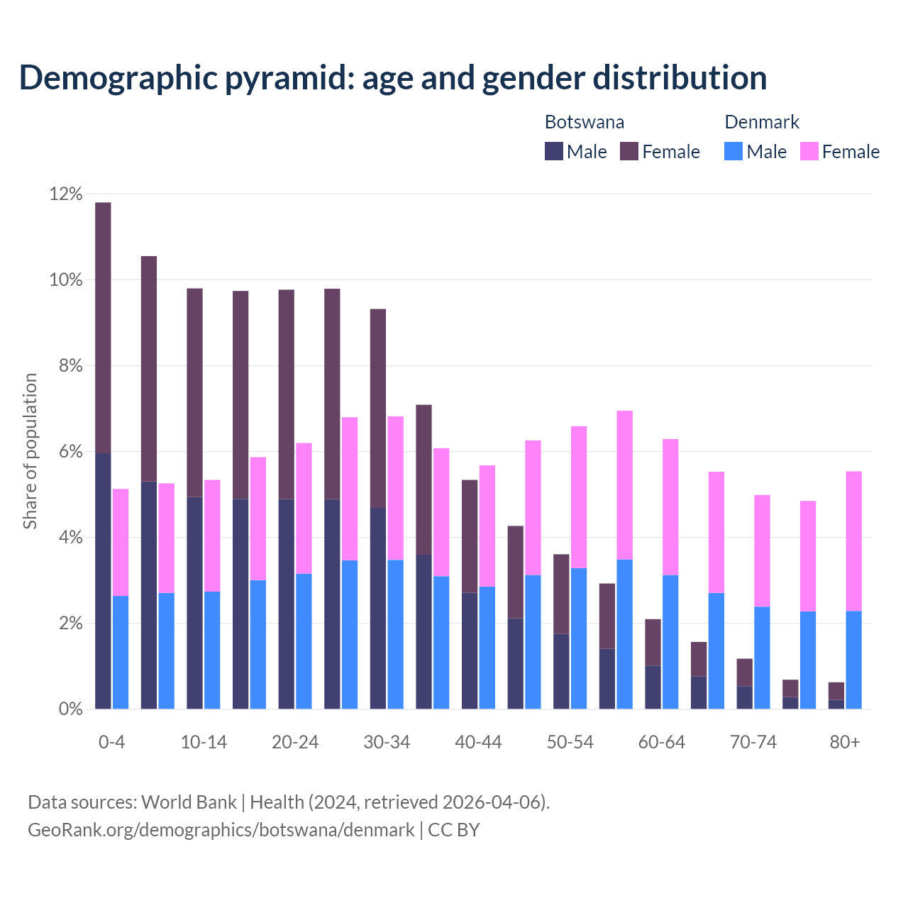 Demographics of Botswana compared to Denmark: