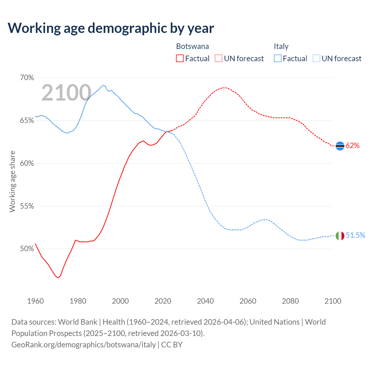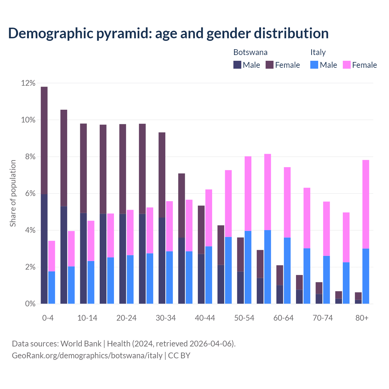 Demographics of Botswana compared to Italy: