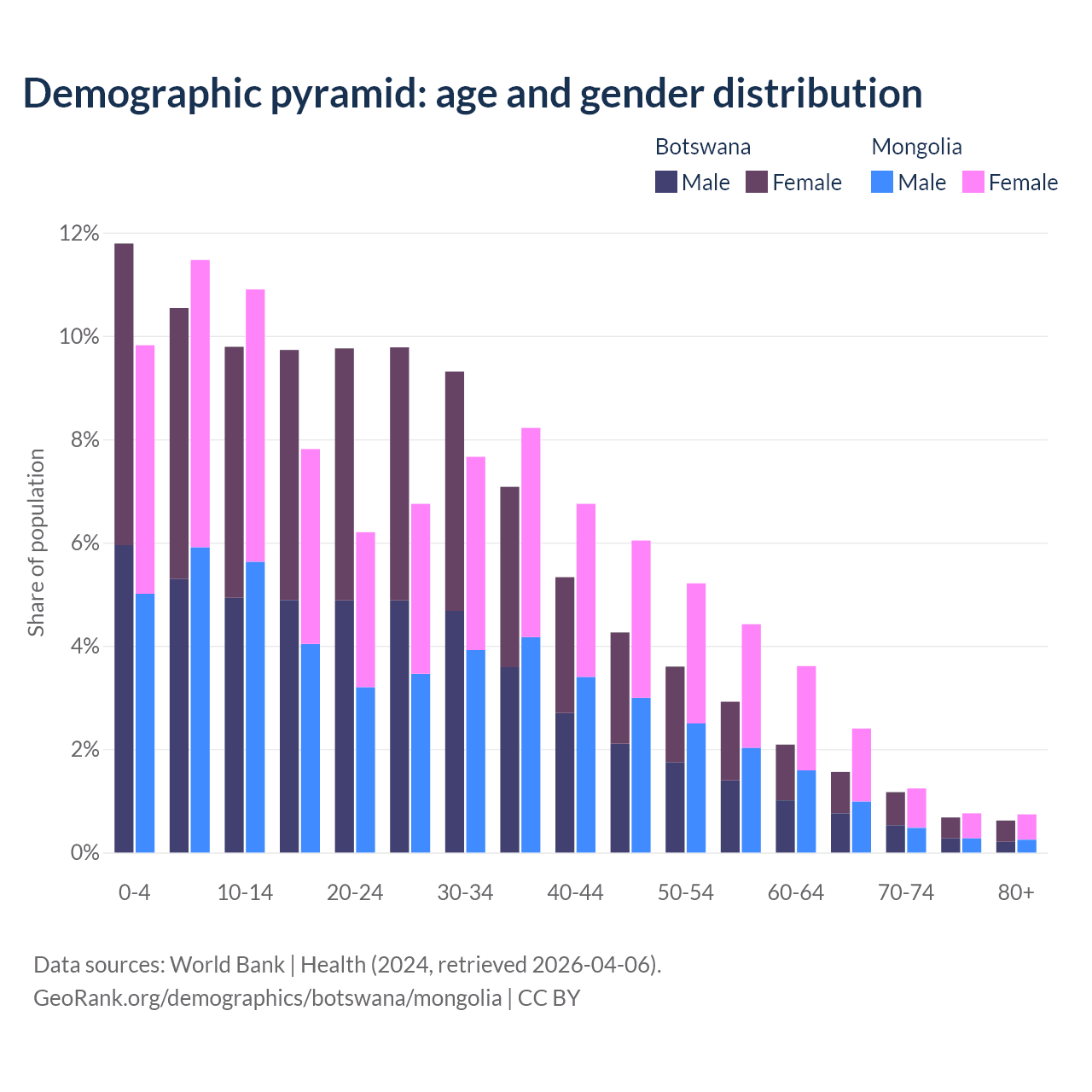 Demographics of Botswana compared to Mongolia: