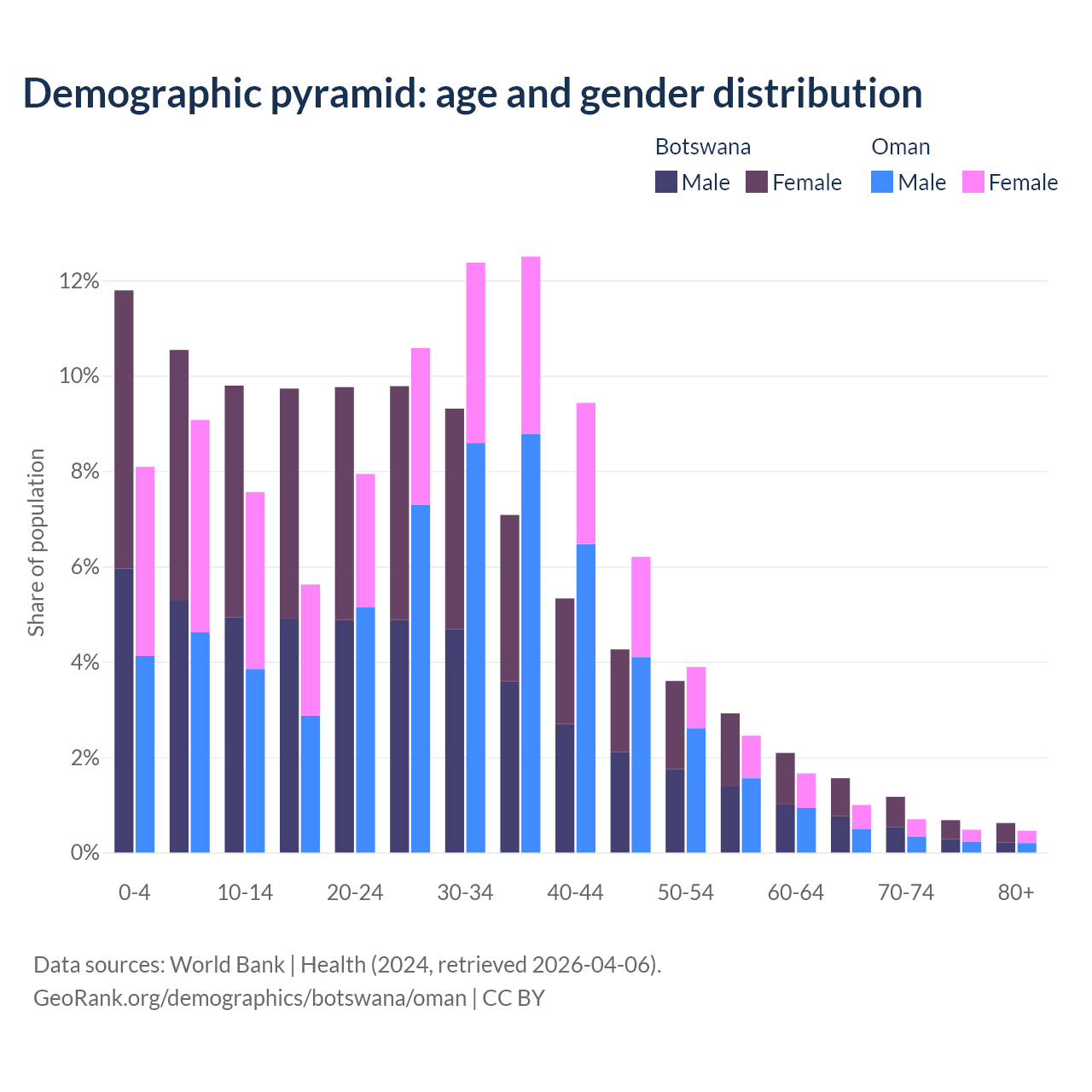 Demographics of Botswana compared to Oman: