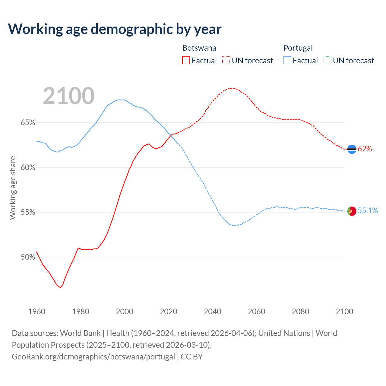 - Botswana has 1.67M working age adults (aged 15-64) vs 6.68M in Portugal.