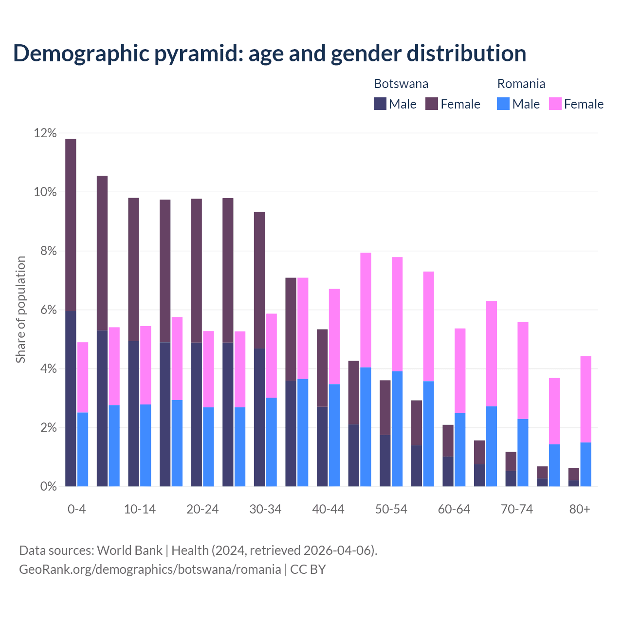 Demographics of Botswana compared to Romania:
