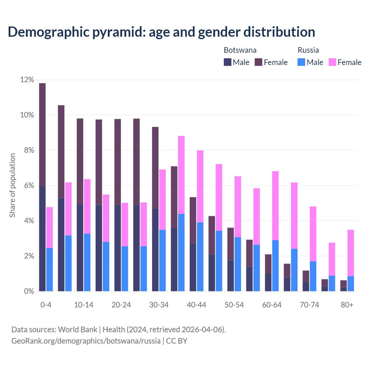 Demographics of Botswana compared to Russia: