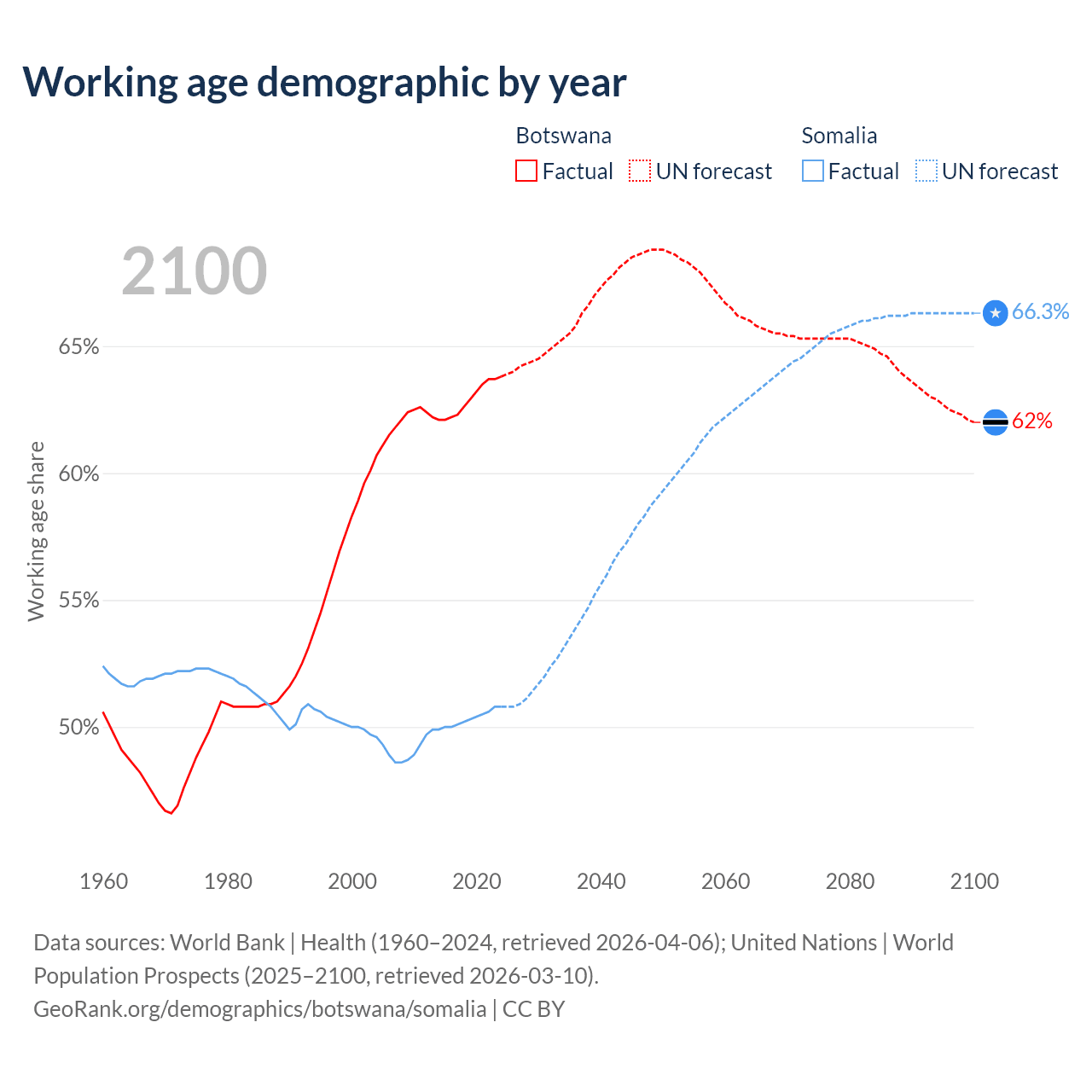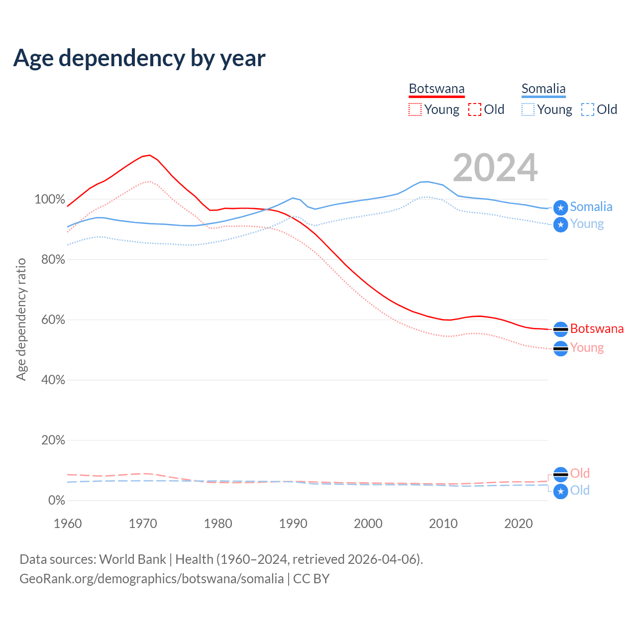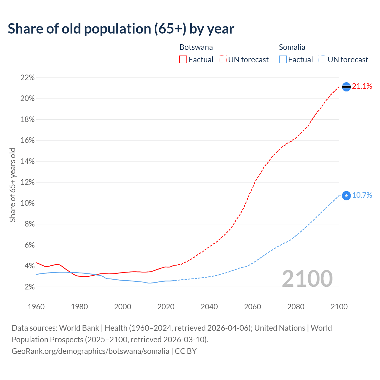 - The share of old-age demographic (65+) in Botswana is 4.04% vs 2.59% in Somalia.
