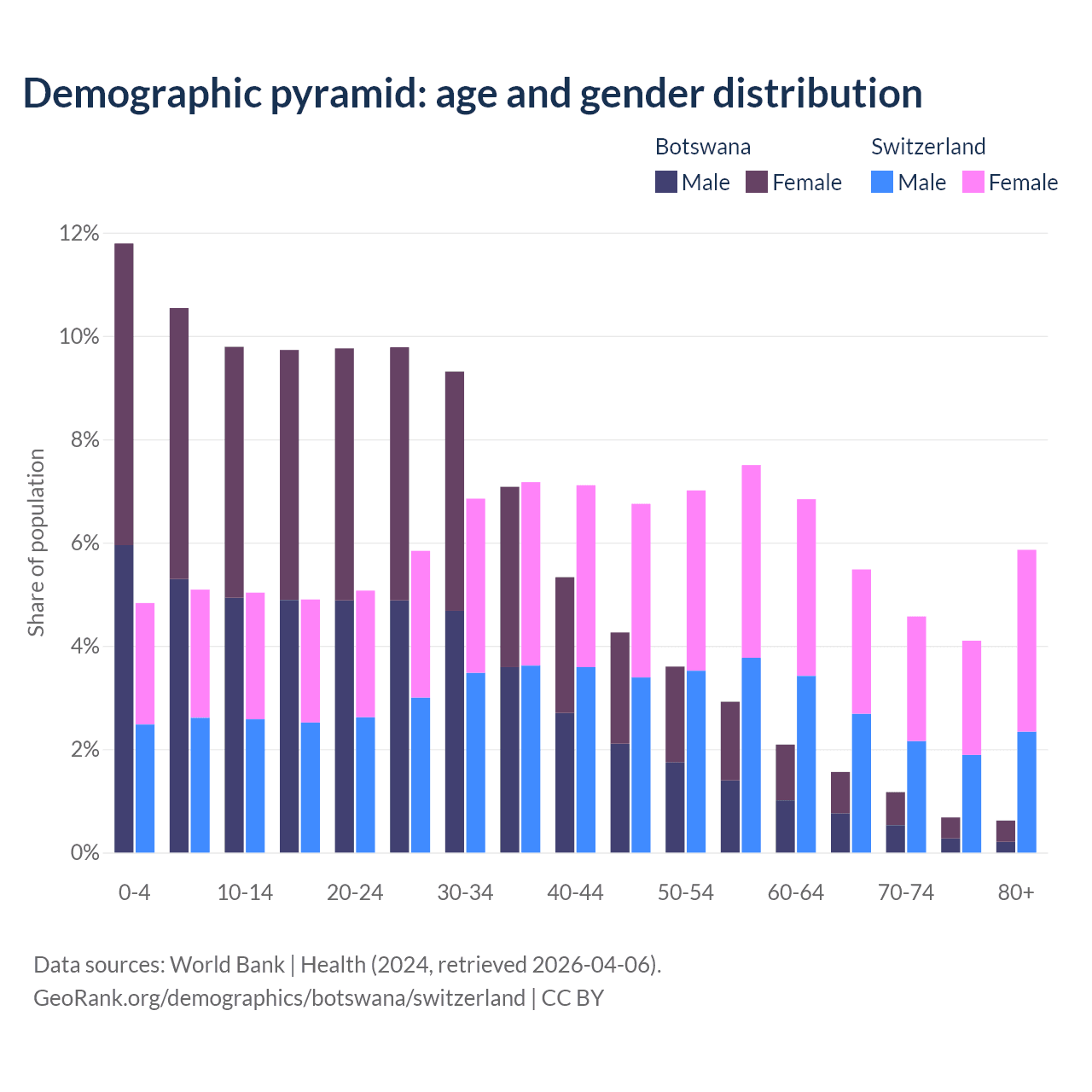 Demographics of Botswana compared to Switzerland: