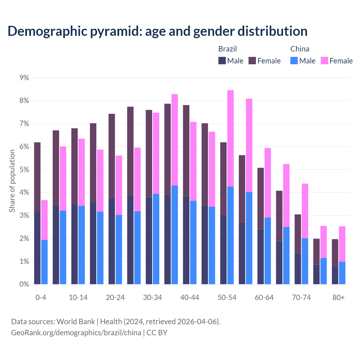 Demographics of Brazil compared to China: