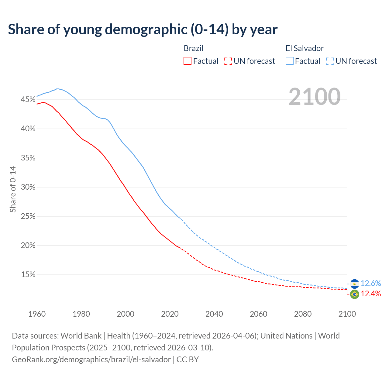 - The total fertility rate is 1.62 in Brazil compared to 1.78 in El Salvador.