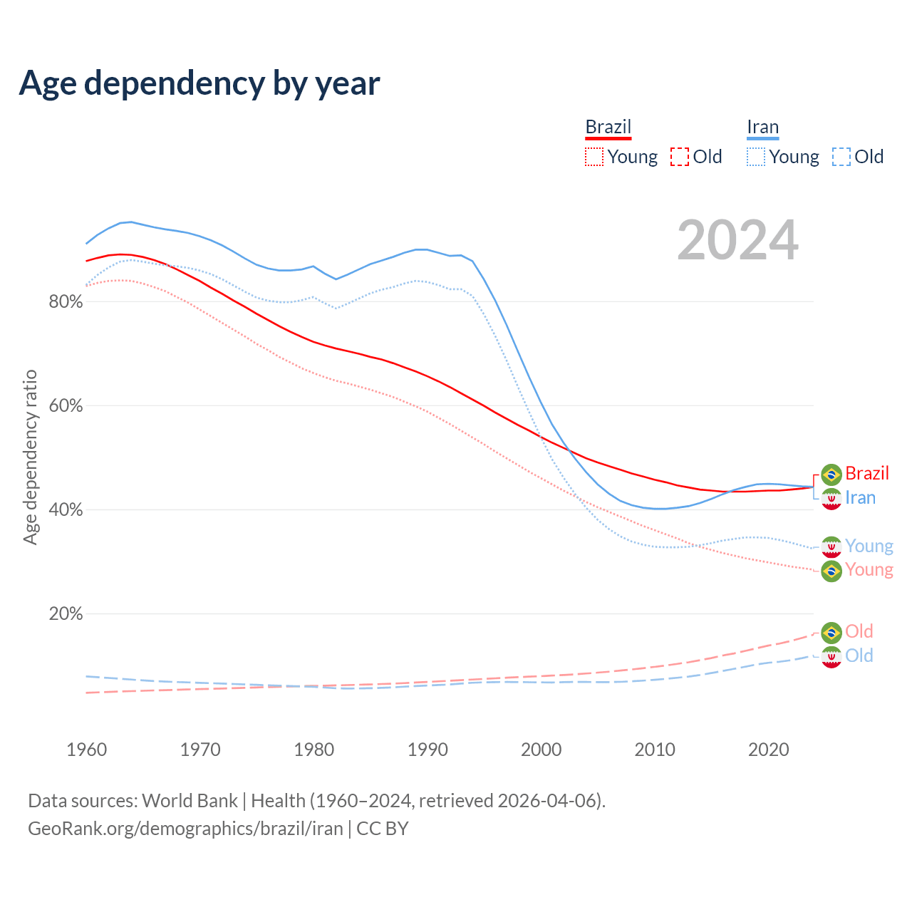 - The share of old-age demographic (65+) in Brazil is 11% vs 8.24% in Iran.