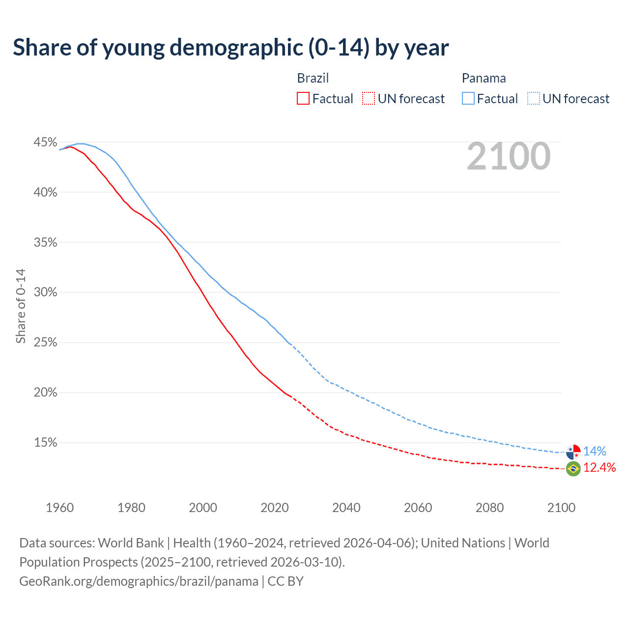 - The total fertility rate is 1.62 in Brazil compared to 2.12 in Panama.