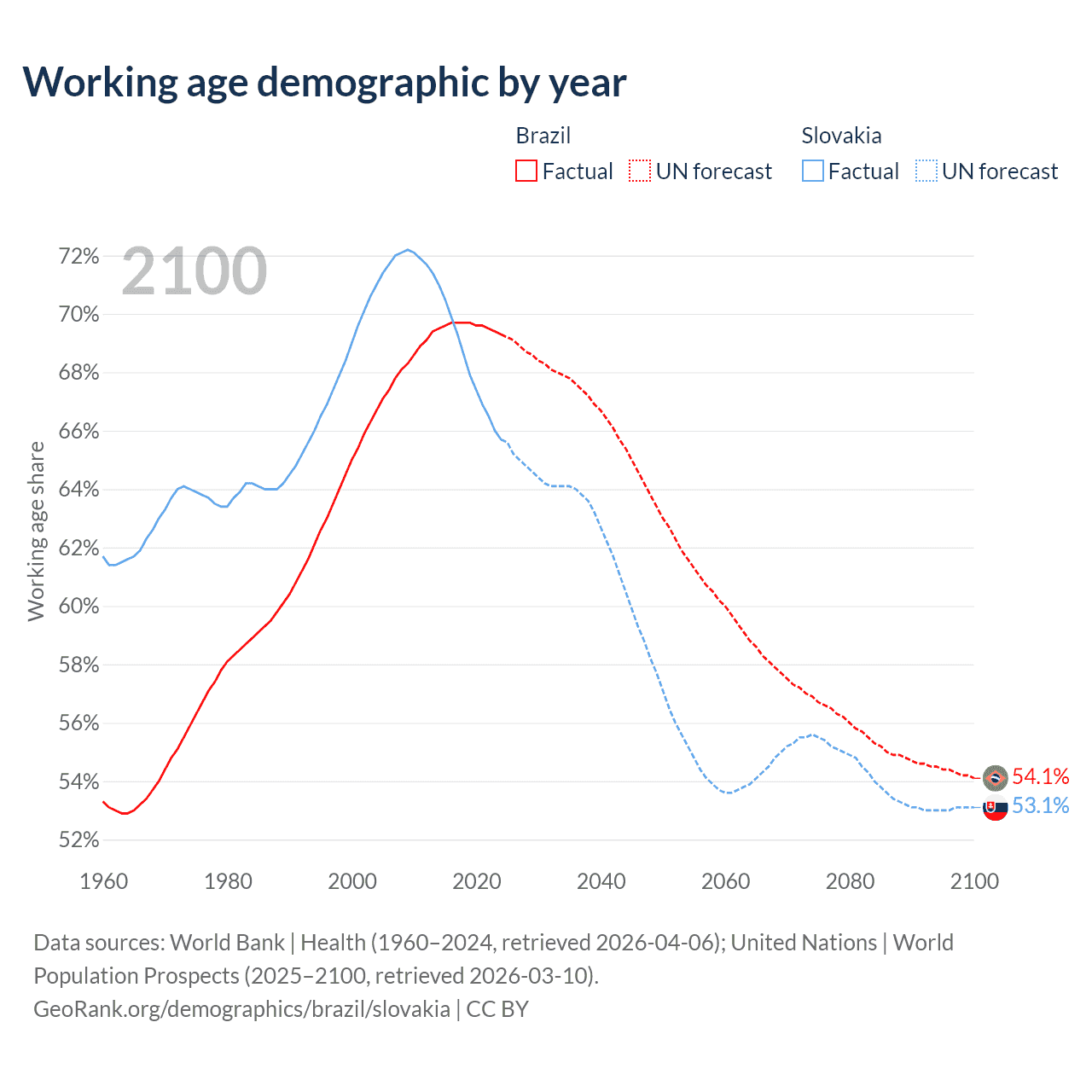- Brazil has 148M working age adults (aged 15-64) vs 3.52M in Slovakia.