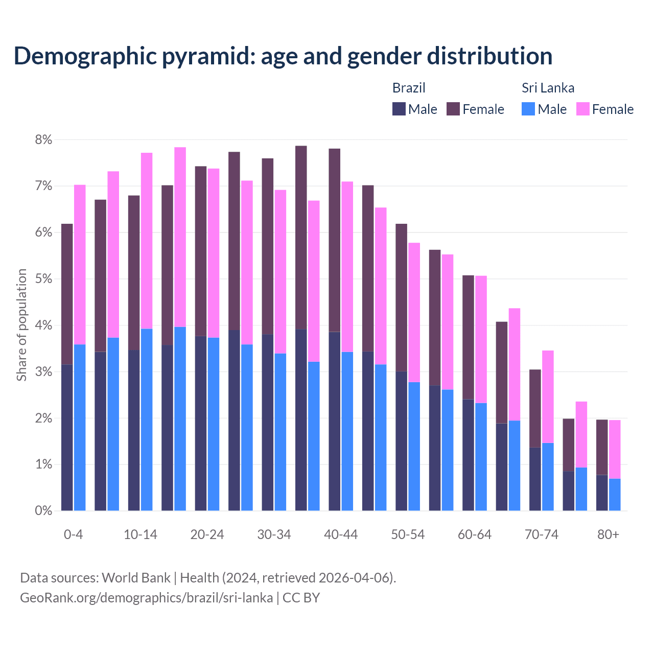 Demographics of Brazil compared to Sri Lanka: